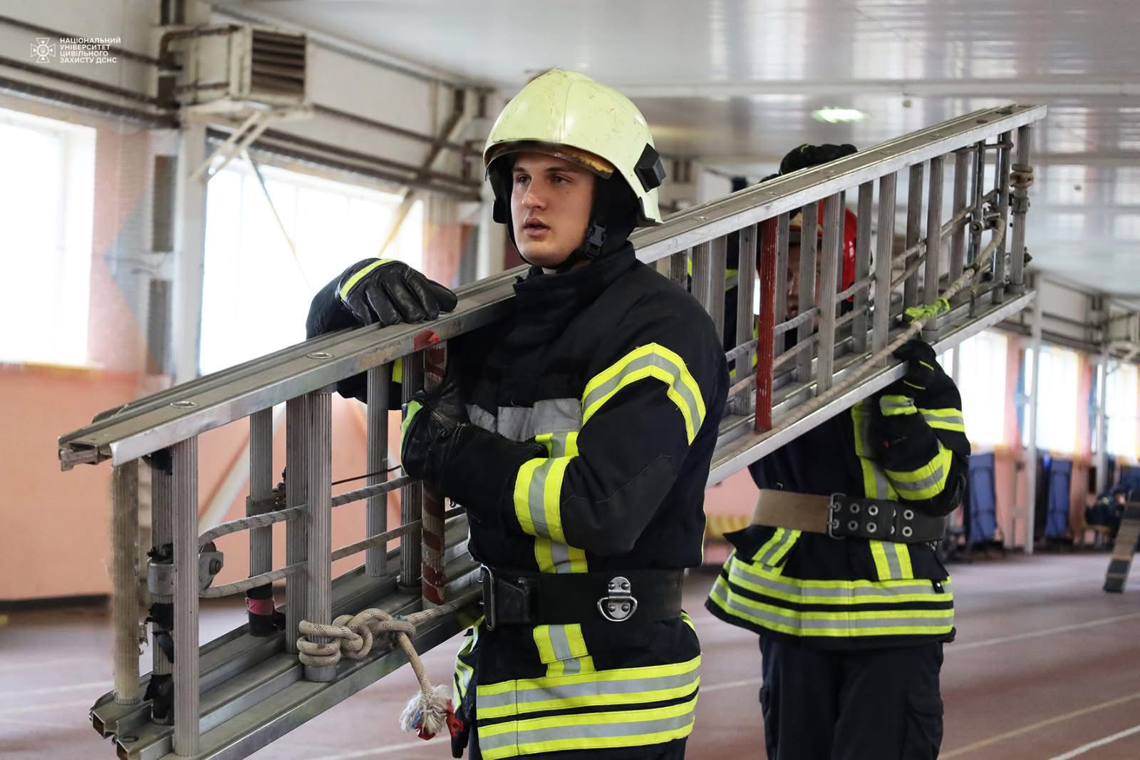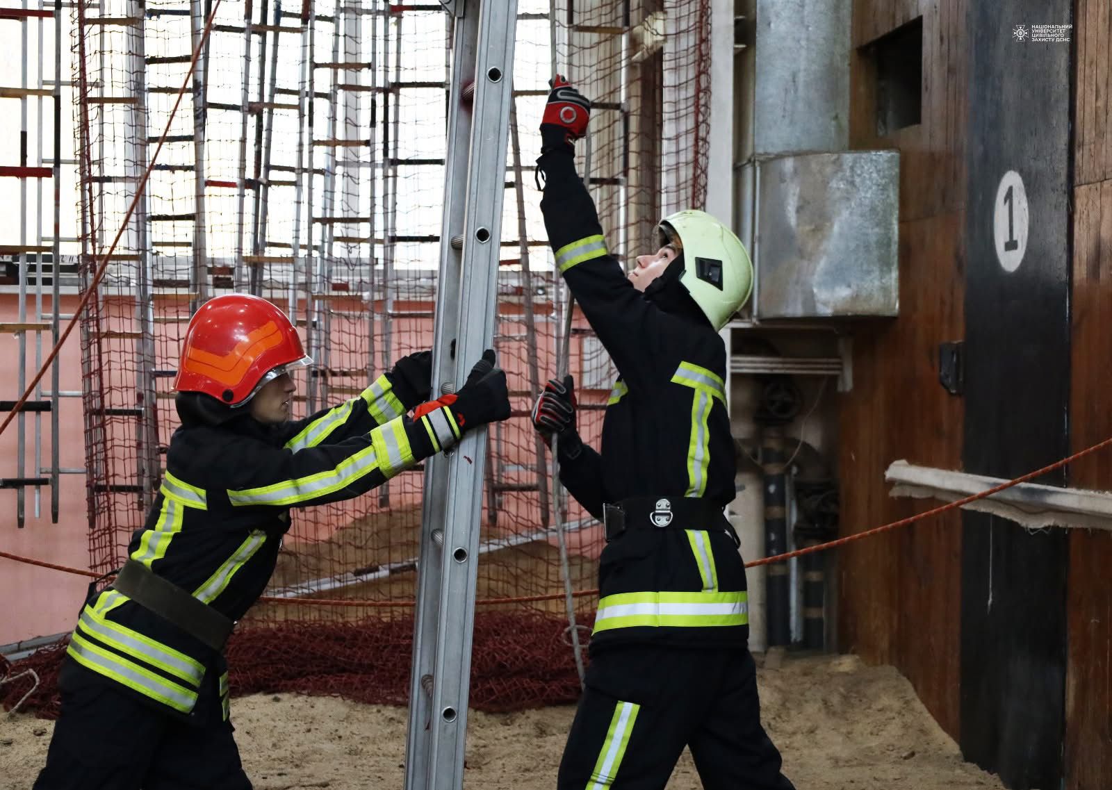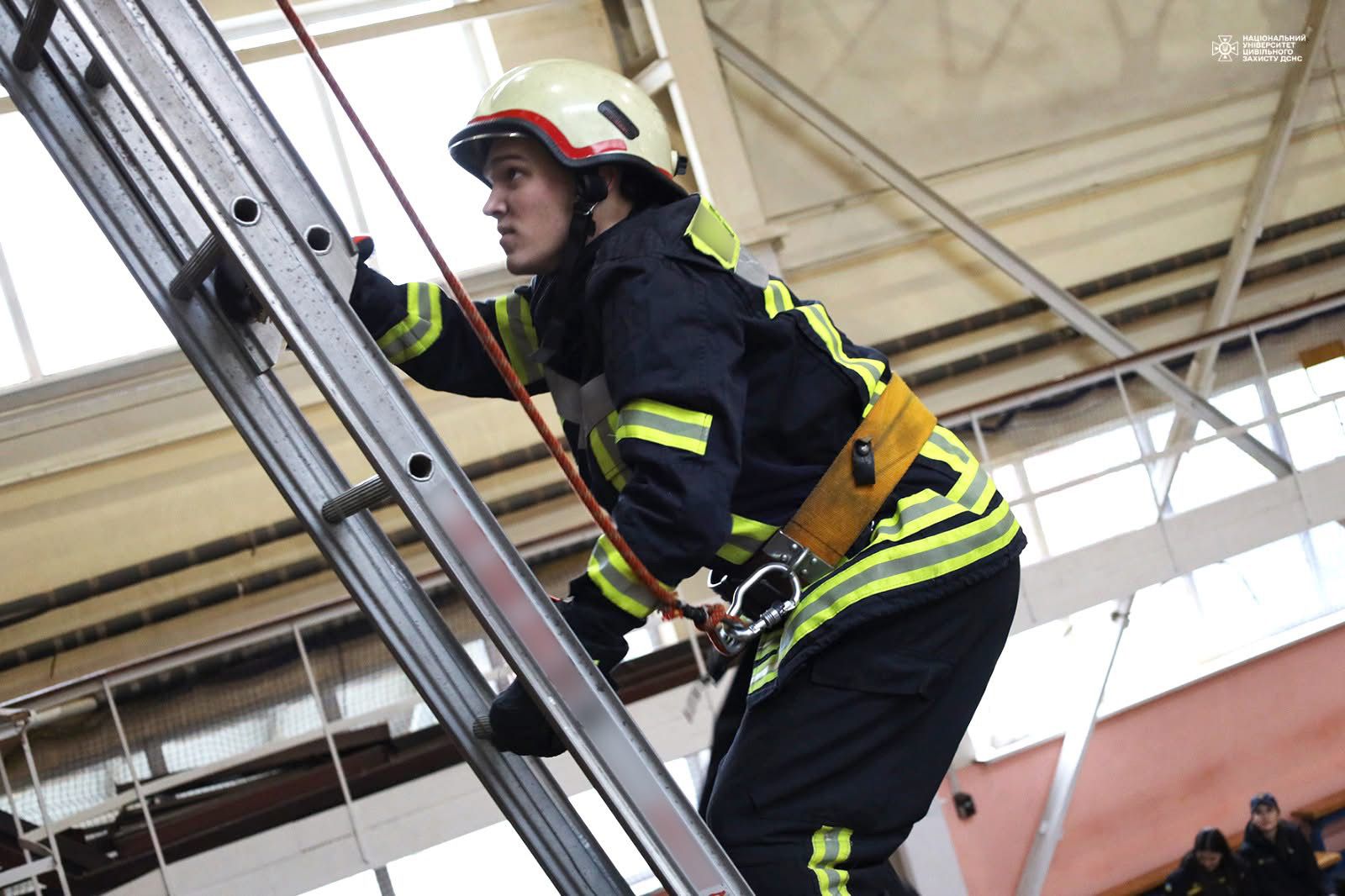 з дисципліни "Пожежно-рятувальна та загальна фізична підготовка "за темою "Перенесення, встановлення та підйом по висувній драбині у вікно 3-го поверху навчальної вежі" з курсантами четвертого курсу.