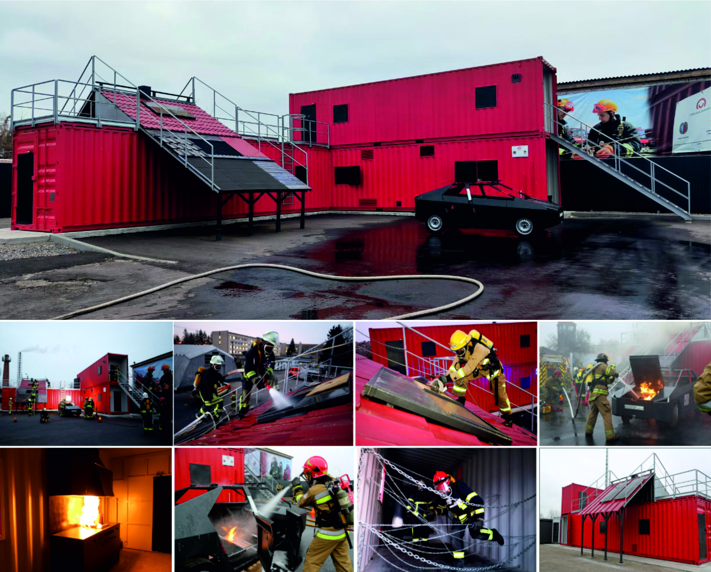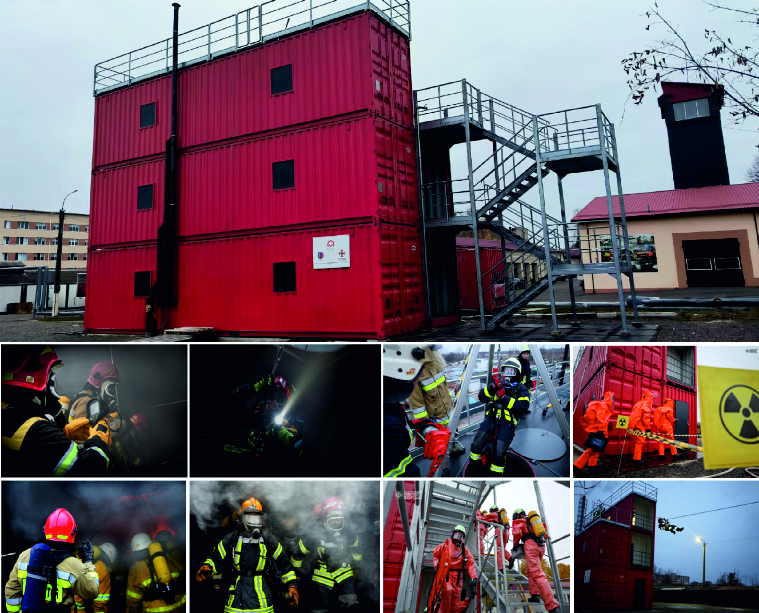 Багатофункціональний тренажер контейнерного типу призначений для комплексної підготовки особового складу, відпрацювання навичок проведення розвідки, пошуку та рятування потерпілих у непридатному для дихання середовищі, пересування в обмежених просторах, локалізації та ліквідації витоків АХНР, виконання рятувальних робіт з від’ємних висот і верхніх поверхів будівель.