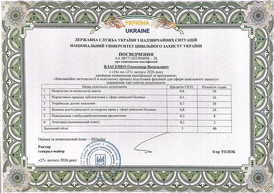 Викладає дисципліни "Протипожежна та аварійно-рятувальна техніка".
