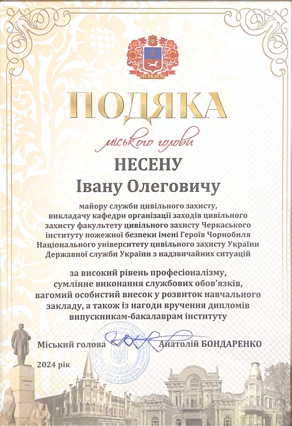 Доцент кафедри, доктор філософії, майор служби цивільного захисту