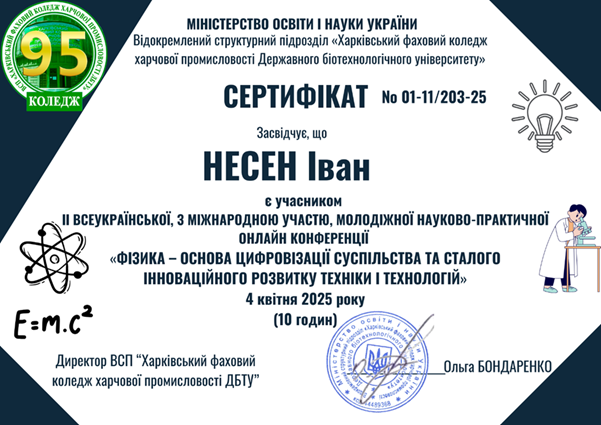- Nesen I. O. Fedorov E. E., Khramova-Baranova O. L., Utkina T. Y., Kozhushko R. Y. The intellectual analysis method of color images. Національний університет «Запорізька політехніка».№ 2 (2025): Радіоелектроніка, Комп'ютерні науки, Управління. Запоріжжя – 2025р. 45-55с.