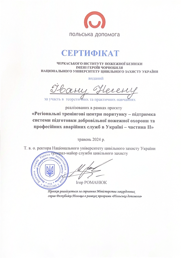 «Дослідження можливості попередження поширення пожеж на торфовищах шляхом обробки поверхонь носіями, що просочені вогнегасними солями» державна реєстрація № 0121U109413 - виконавець.