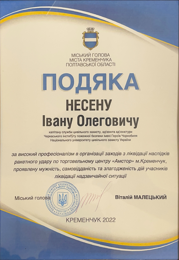 - нагрудний знак «За відвагу в надзвичайній ситуації»