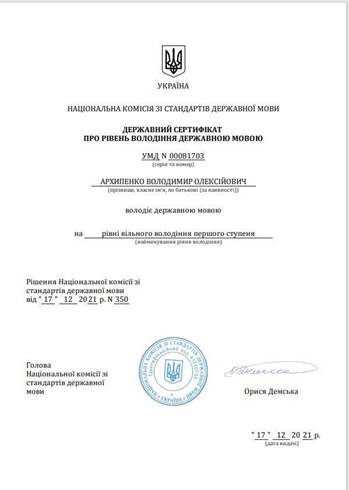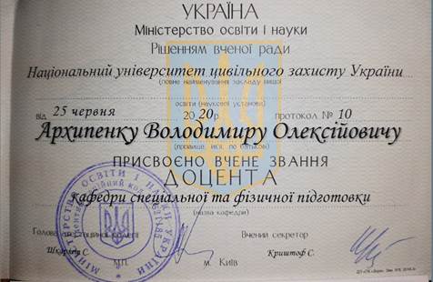 Вчене звання: Доцент кафедри Спеціальної та фізичної підготовки Національного університету цивільного захисту України.