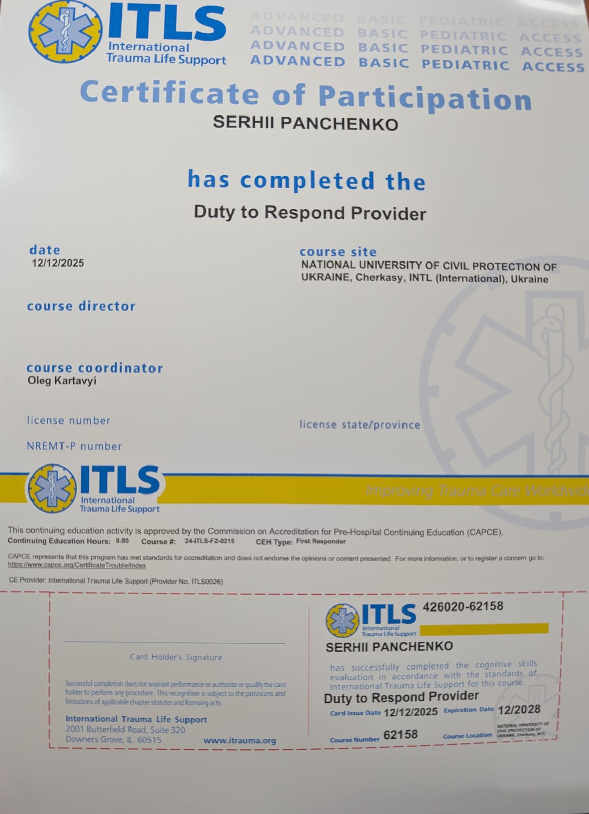 31 серпня 2024 року Закінчив ад’юнктуру Черкаського інституту пожежної безпеки імені Героїв Чорнобиля